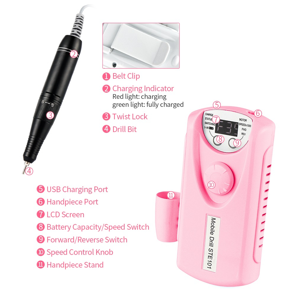 ✅SG Stocks✅ 30000 RPM Cute Nail Drill Machine With HD LCD Display Rechargeable Nail Master For Manicure Portable Nail Drill Milling Machine