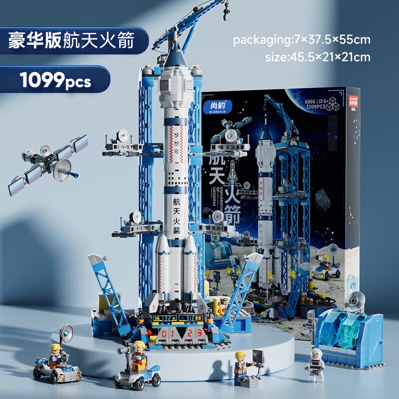 尚韵积木拼装儿童玩具男孩小颗粒中国火箭航天飞船积木模型立体拼插