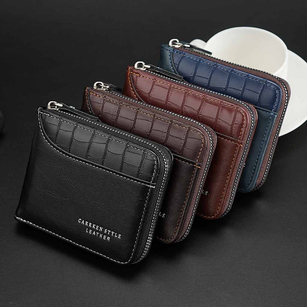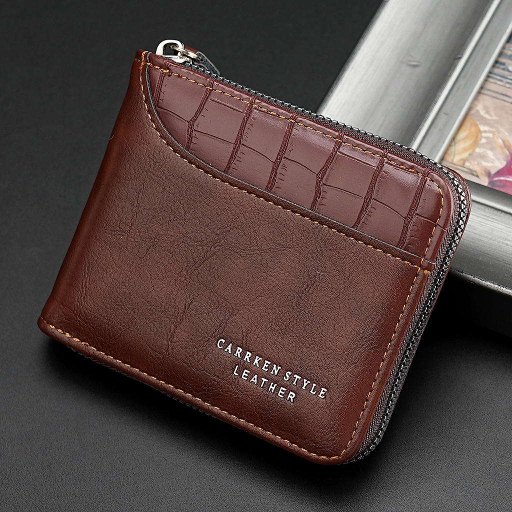 1 Retro Stitching Stone Pattern Zipper Short Wallet Youth Fashion Multifunctional Wallet Bi-Fold Credit Card Coin Purse Men's Gift