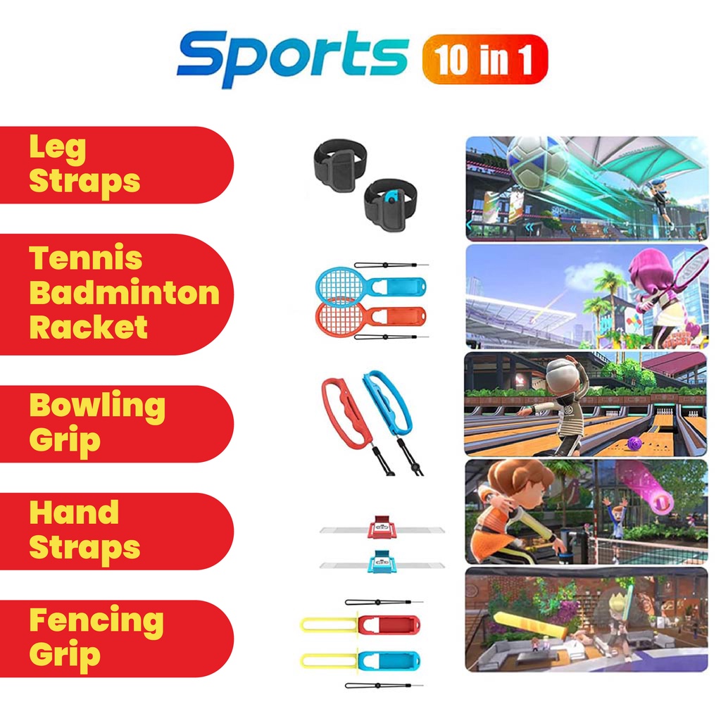 10 In 1 For Nintendo Switch Sports Control Accessories Motion Set Joy-con Wristband/Tennis Racket/Leg Strap [SG Seller]