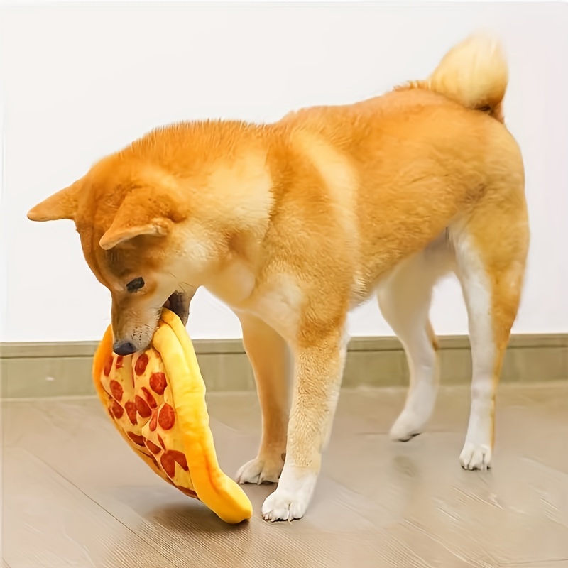 1pc Pizza Doughnut Design Pet Teeth Scratching Plush Toy Durable Chewing Toy Dog Interaction
