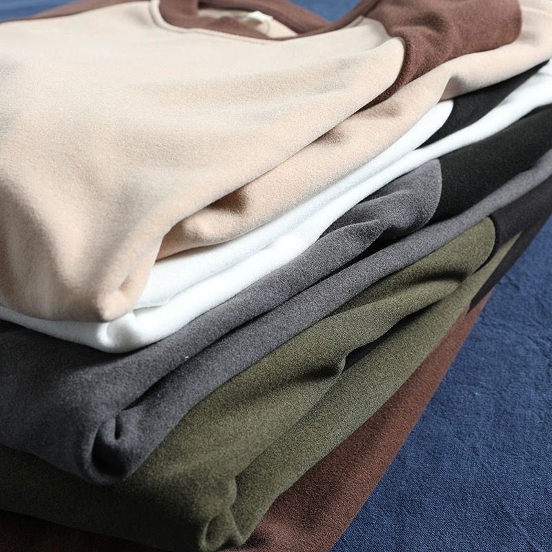 2023 new Double-Sided German Velvet Bottoming Shirt Men Autumn Winter Style Fashionable All-Match Raglan Sleeve Sweatshirt Men Casual Contrast