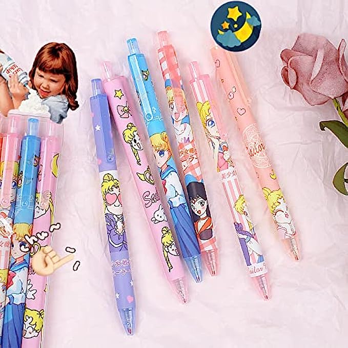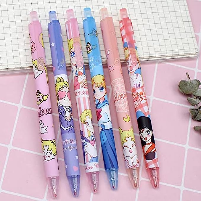 6 Pcs Kawaii Pens Anime Sailor Pen Moon Merchandise Black Ink 0.5mm Ballpoint Pens Office School Supplies for Girls Women Press Gel Pen