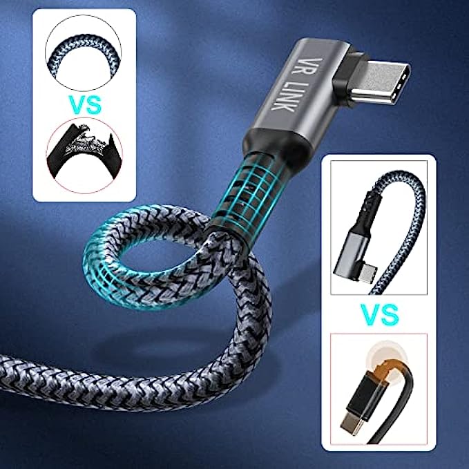 【Friendly Design】The USB C-type end buckle is designed with a 90° right angle, which effectively prevents the Oculus quest cable port from breaking during gaming. Easier to plug into VR headset for pc not easily loosened.