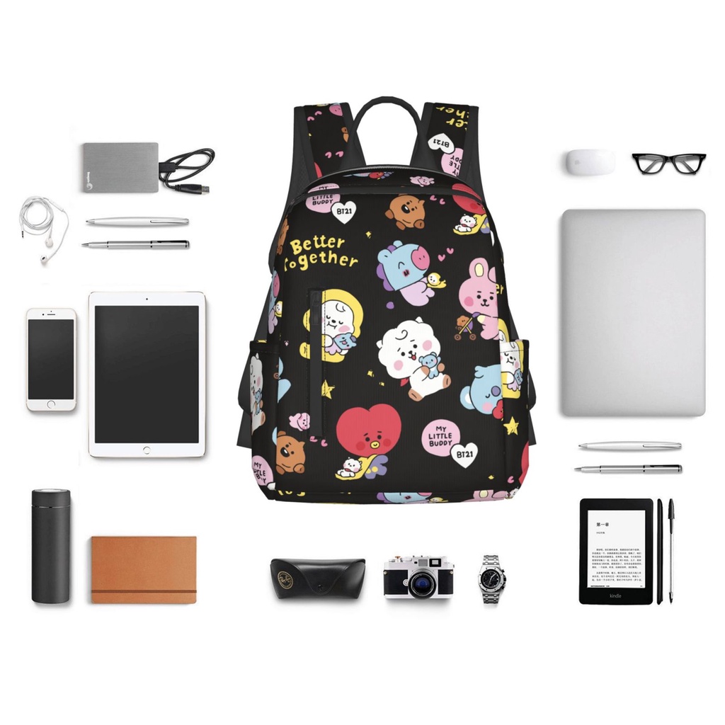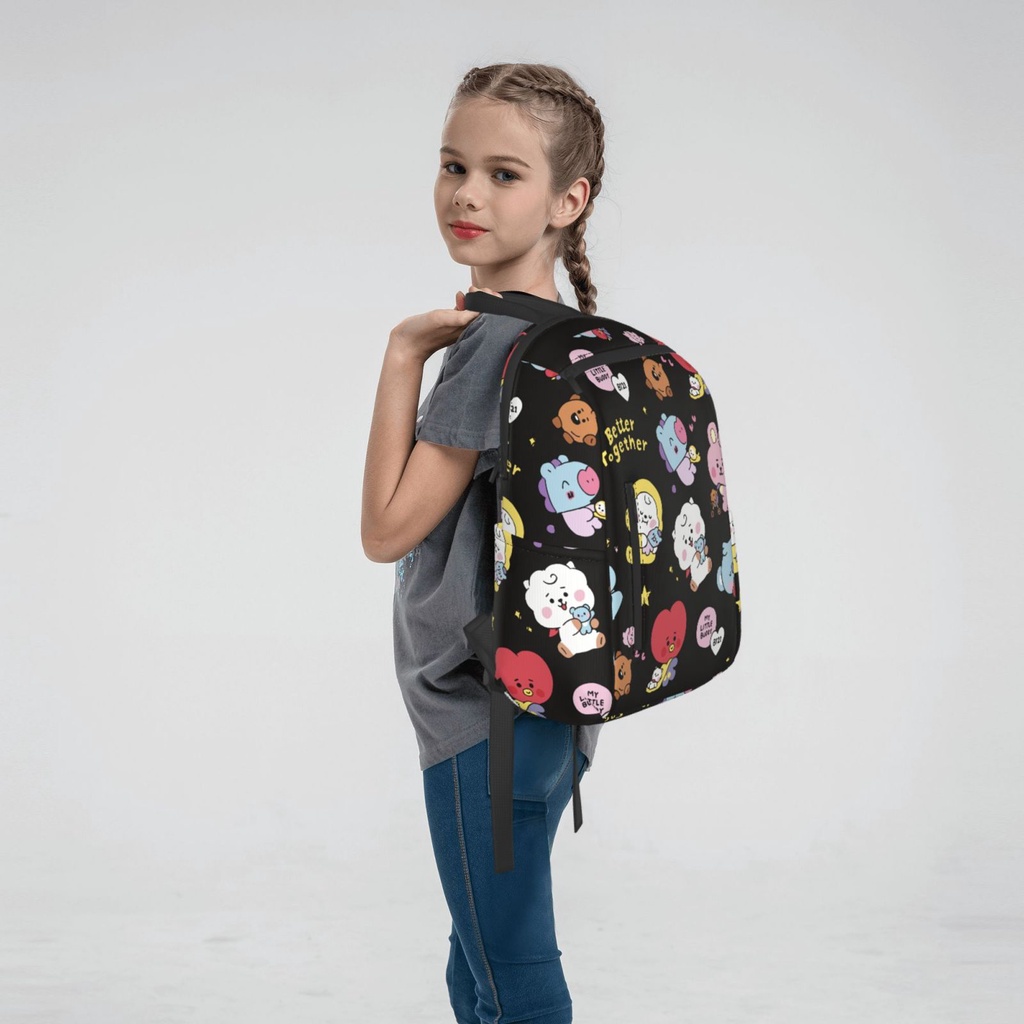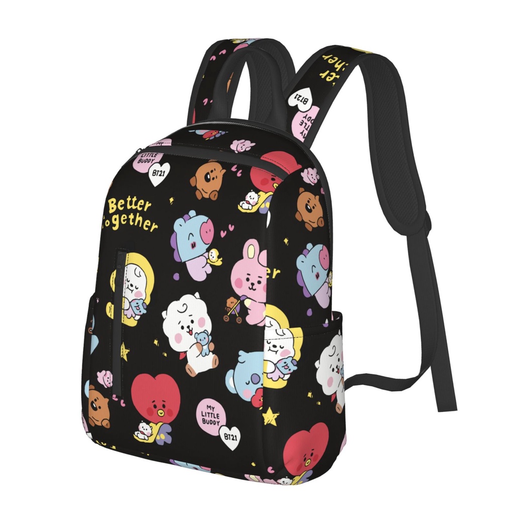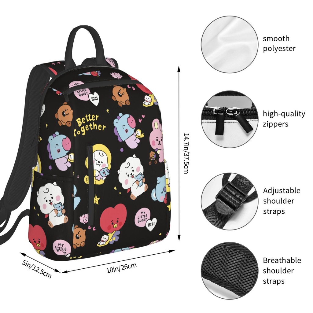 BT21 14.7 Inches Backpacks Cute Book Bag for Students Commuting, Funny Backpack Durable Travel Bags with Multiple Zipper Pockets Design