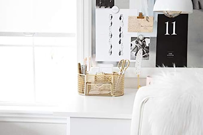 • ROOM FOR ANY OFFICE SUPPLIES: Looking for office supplies for women desk organizer? Look no further! This gold organizer has room for all supplies, from pens and pencils to scissors and tape.