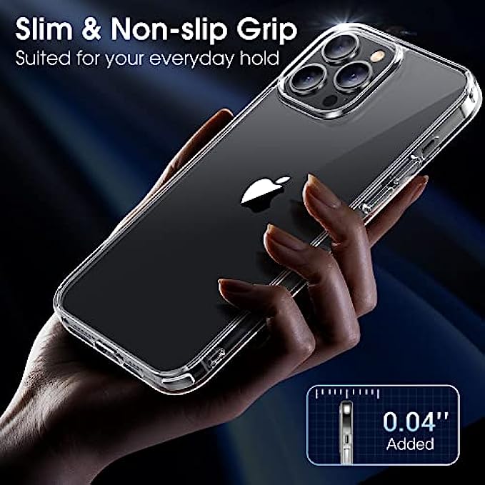 • [Crystal Clear & Never Yellow]: Using high-grade Bayer's ultra-clear TPU and PC material, allowing you to admire the original sublime beauty for iPhone 13 Pro Max while won't get oily when used. "Never yellow" thanks to the nano-grade diamond anti-oxidation coating which can effectively resist 99.9% of yellowing caused by ultraviolet rays and sweat.