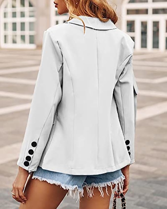 Hongqizo Button Blazer for Women Long Sleeve Suit Double Breasted Cardigan Work Office Jackets Coat S-XXL
