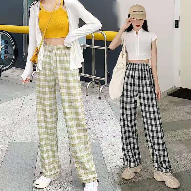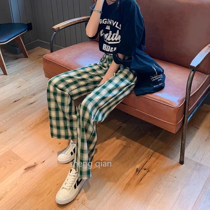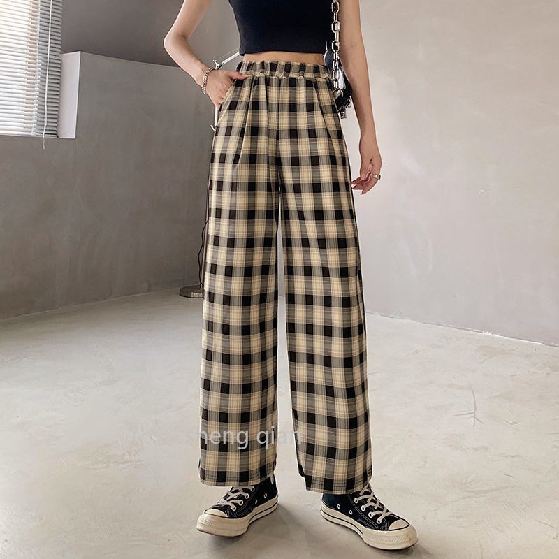 Korean Style Summer Thin Loose and Comfortable Plaid Pants Wide Leg Pants Women
