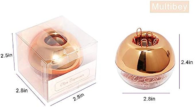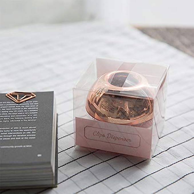 MultiBey NE0600607 Light Luxury Fashion Paper Clips, Rose Gold Edition, In Round Paper Clip Holder With Magnetic Lid, 28 mm, 100 Piece Per Box