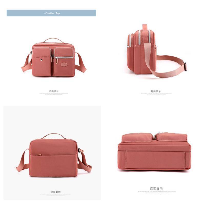 Multifunctional Waterproof Tote Handbag Multi-Layer Storage Design Large Capacity Fashion Shoulder Bag Water-Repellent Nylon Fabric Cross-Body Bag Outdoor Leisure Commuter Busi