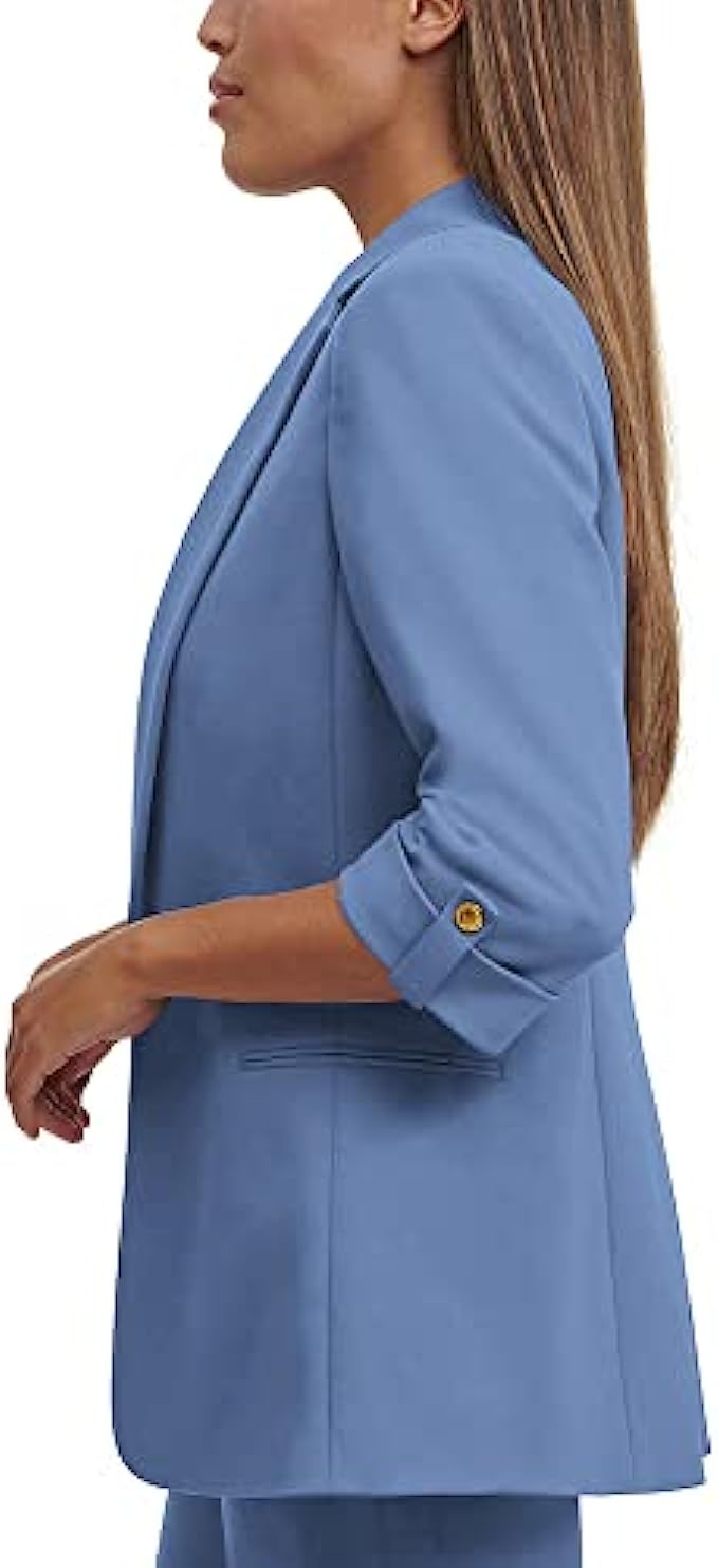 • Features: 3/4 length scrunched sleeves, open front with a single, solid color/ plain.Womens Casual Work Office Blazer Jacket.Basic lapel collar blazer jacket for women.