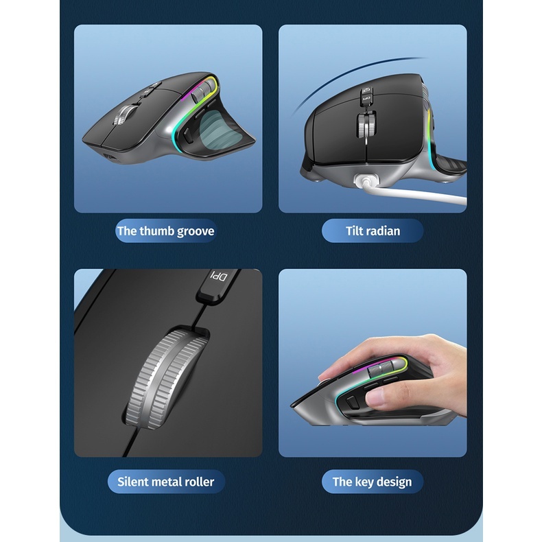 SeenDa 10000dpi Wireless Gaming Mouse 2.4G Bluetooth Rechargeable Colorful Lights Ergonomic Office For PC Laptop
