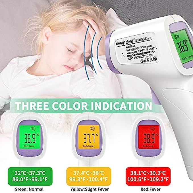 ➤【Friendly Design】The no-touch digital thermometer has a non-slip design, and the LCD display is clear and easy to read, the display can be used at night without in light. The thermometer is equipped with an internal memory that can store up to 40 sets of data readings that allows you to keep track of the historical temperature changes for you and your family.