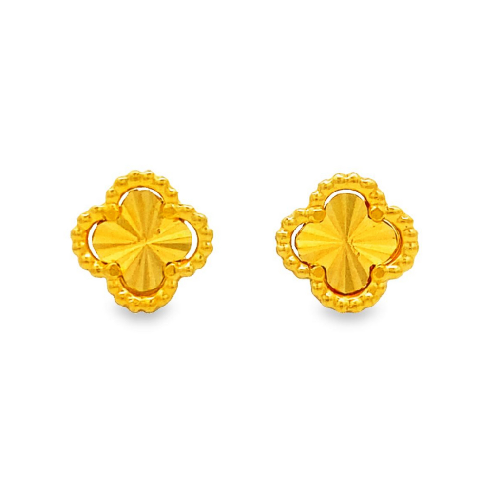 Top Cash Jewellery 916 Gold Clover Design Stud Earrings