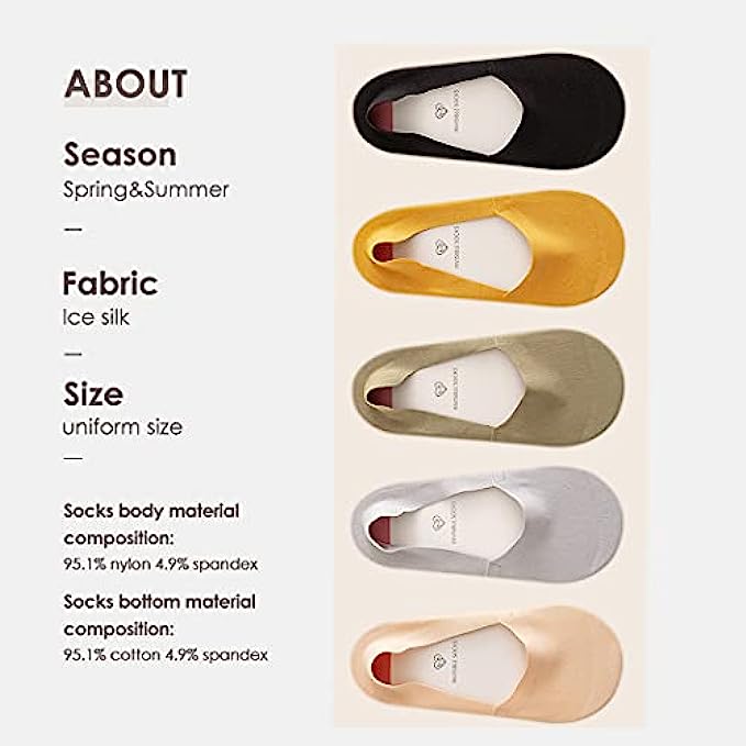 • ✬Cool & Dry: Skin-friendly and amazing smooth, our women no show socks comfort your foot. The cotton sole keeps your feet dry and cozy, and the top layer is as soft as silk.