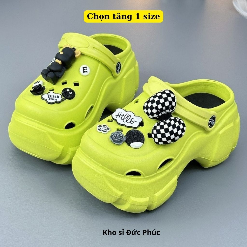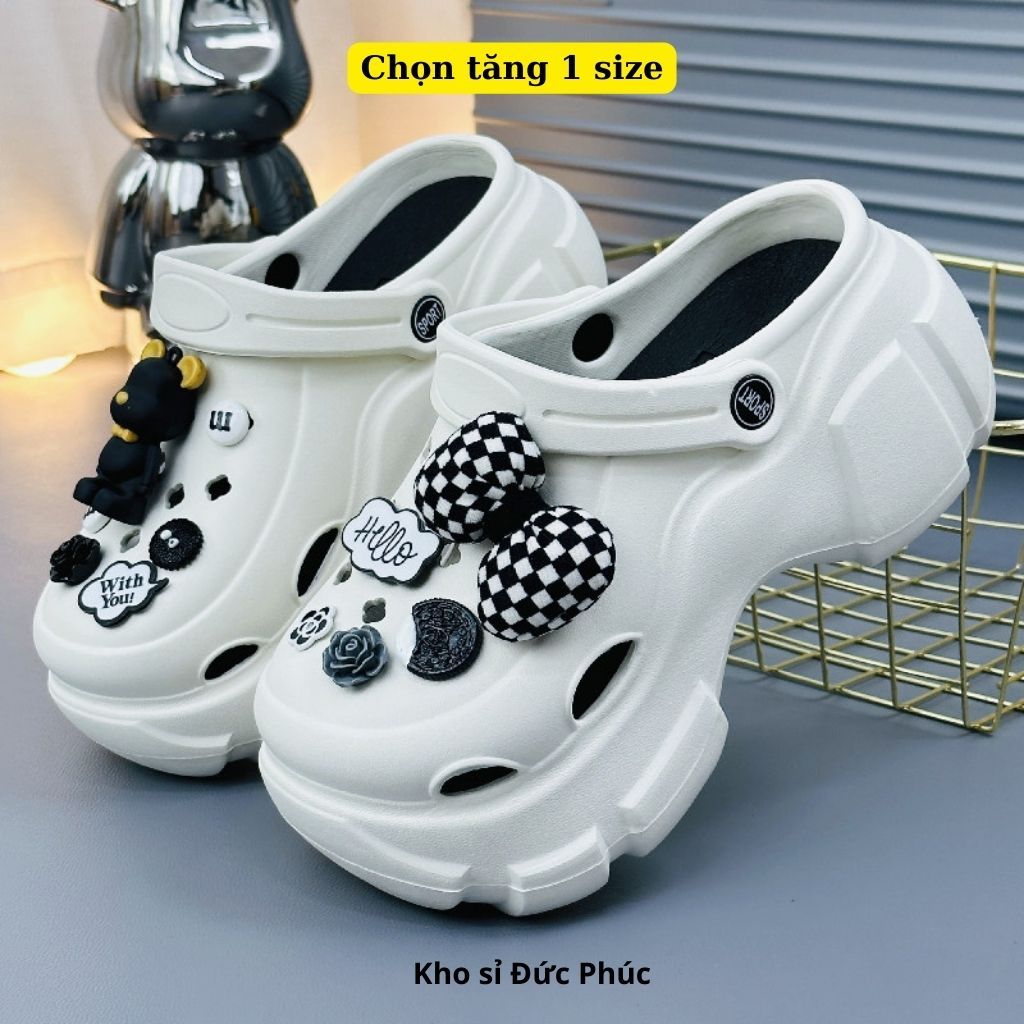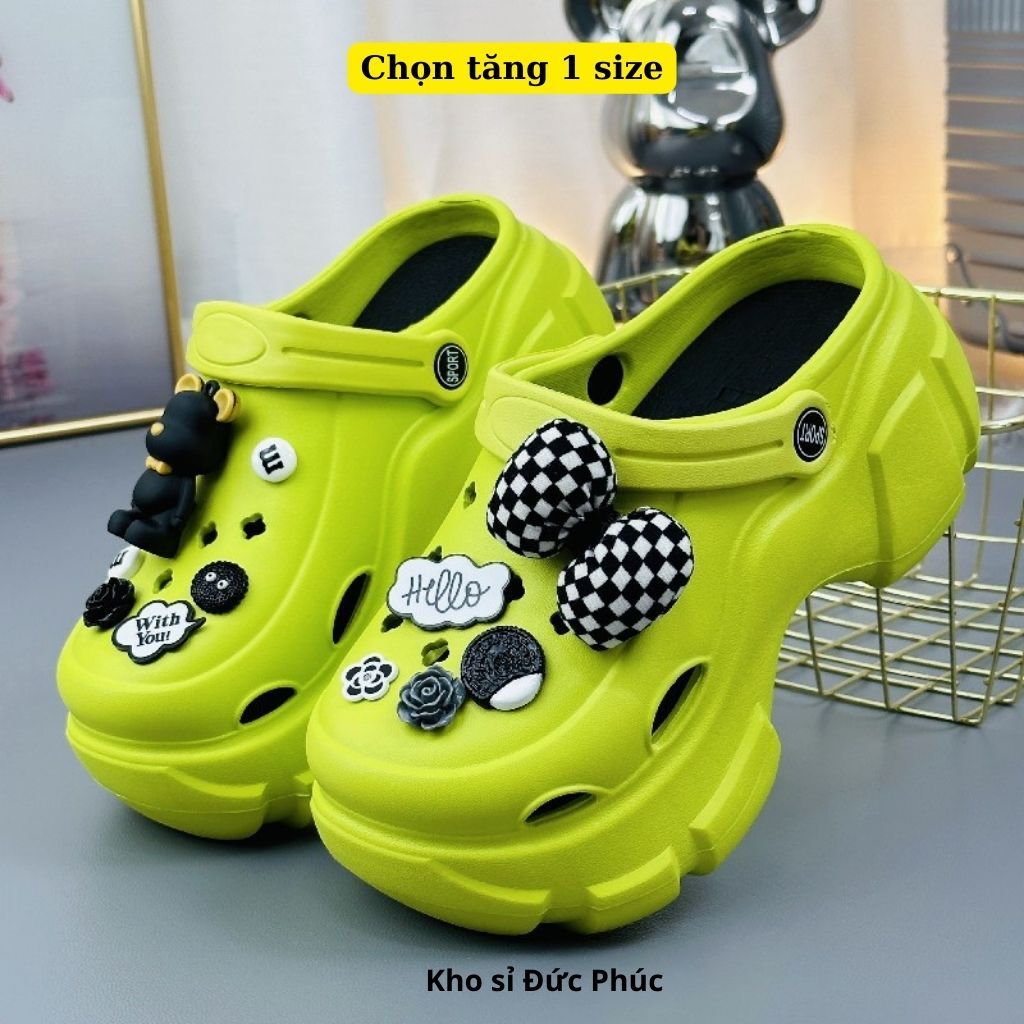 Crocs Height Increased Insoles Women Mules 6cm With Plaid Bear Pattern And Height Choosing 1 size Duc Phuc