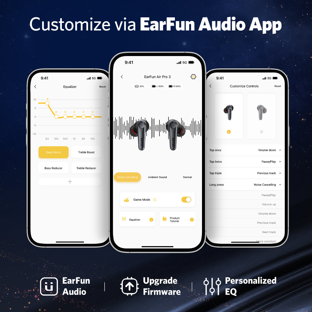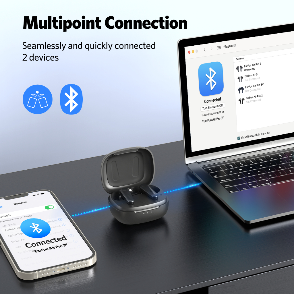 EarFun Air Pro 3 TWS BT 5.3, LE-audio ,Active Noise Cancellation, Multi Point Connection and enhanced 6 Microphone