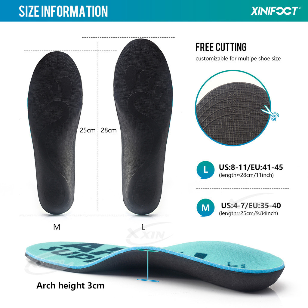 EVA Orthotic Sports Insole Arch Support Heel Cushion Unisex Foot Care size 35-46