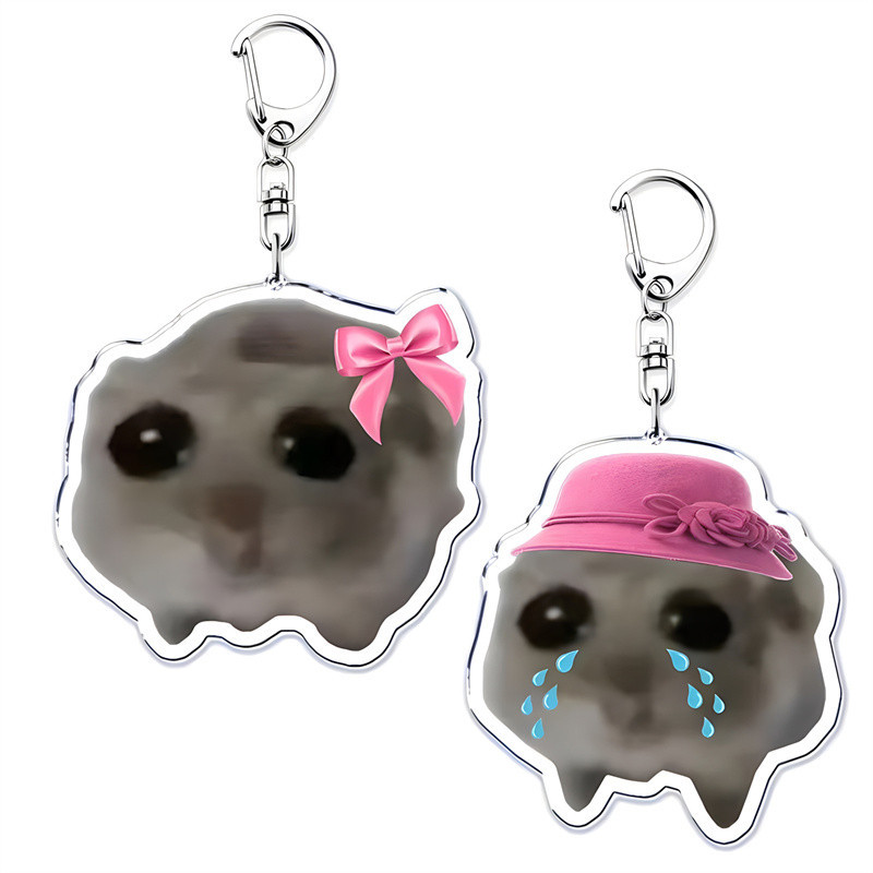 Fun Meme Im Just A Girl Sad Hamster Key Chain Keychains Ring for Accessories Bag Funny Pendant Keyring Jewelry Fans Gifts SYLVANIAN FAMILIES