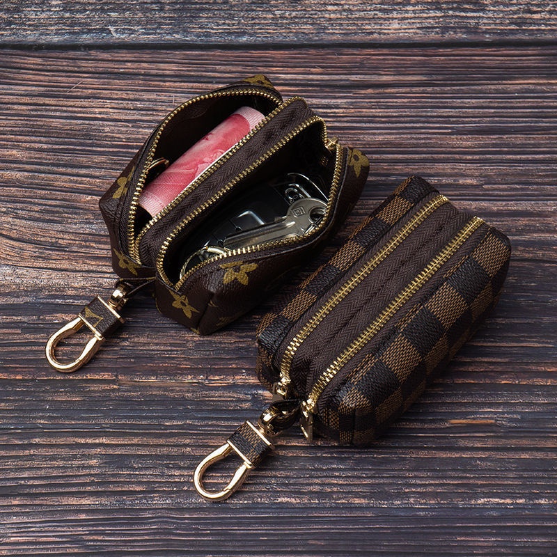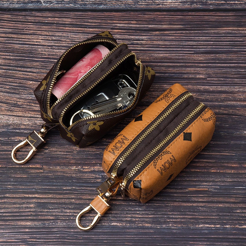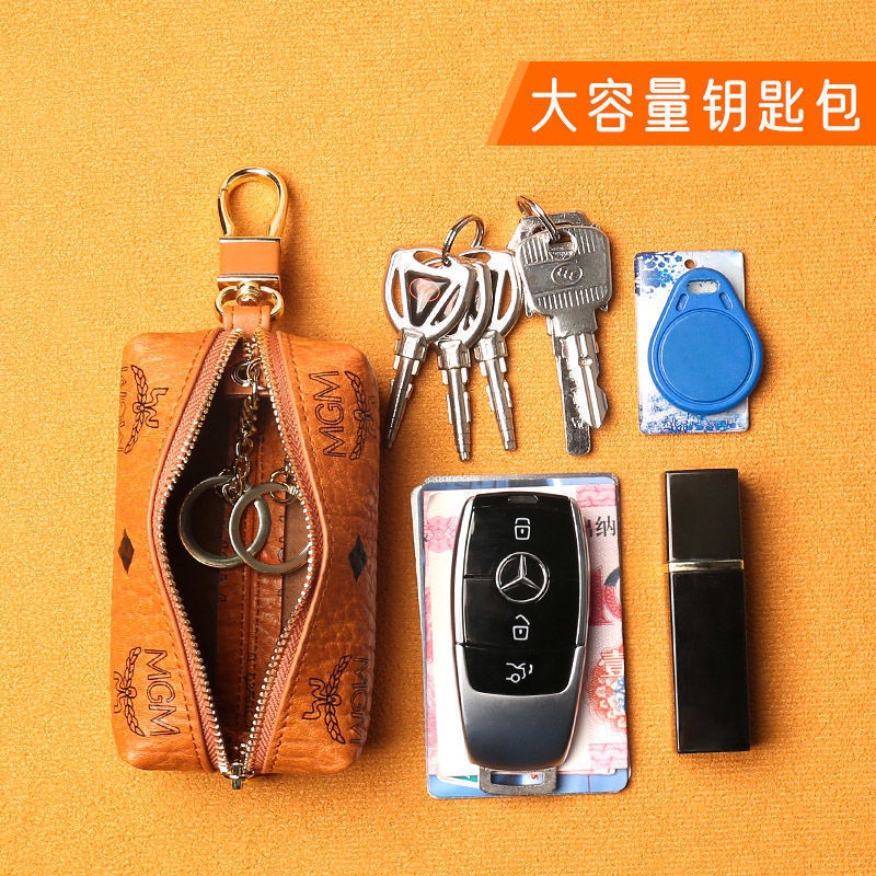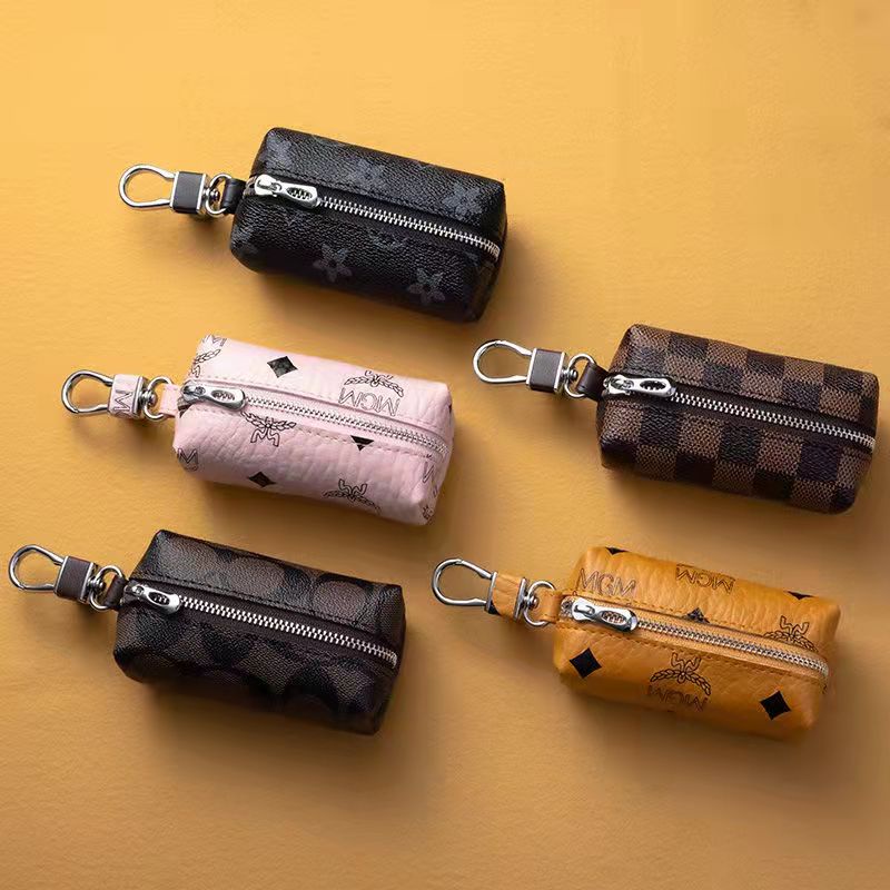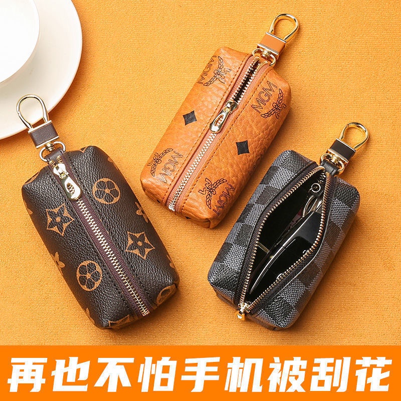 In Stock Multi-functional Genuine Leather Zipper Closure Car Key Holder Keychains Pouch Car Key Pouch Card Bag Wallet