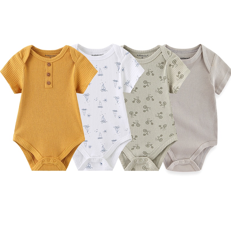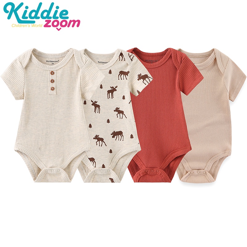 Kiddiezoom 4Pieces Summer Cartoon Newborn Baby Girl Bodysuits Soft Baby Clothing