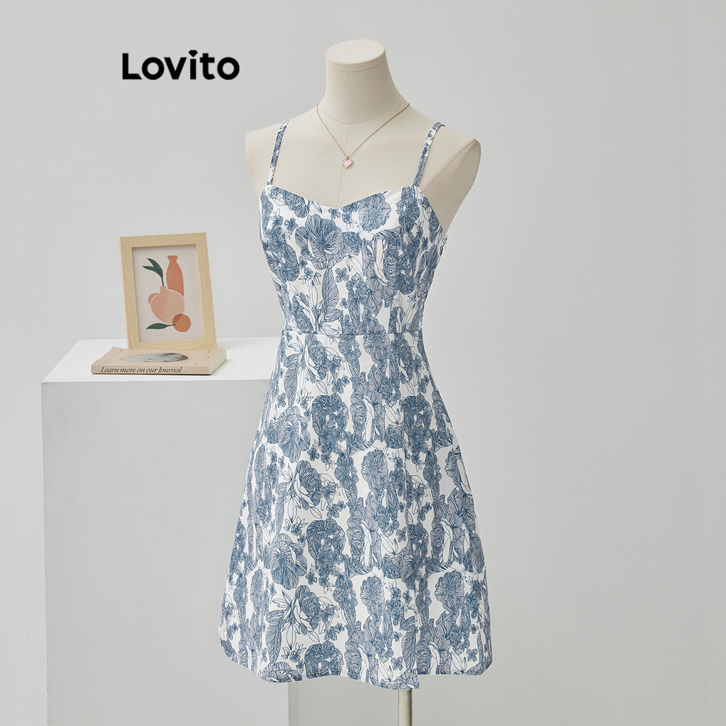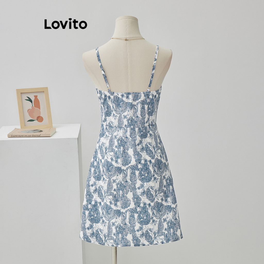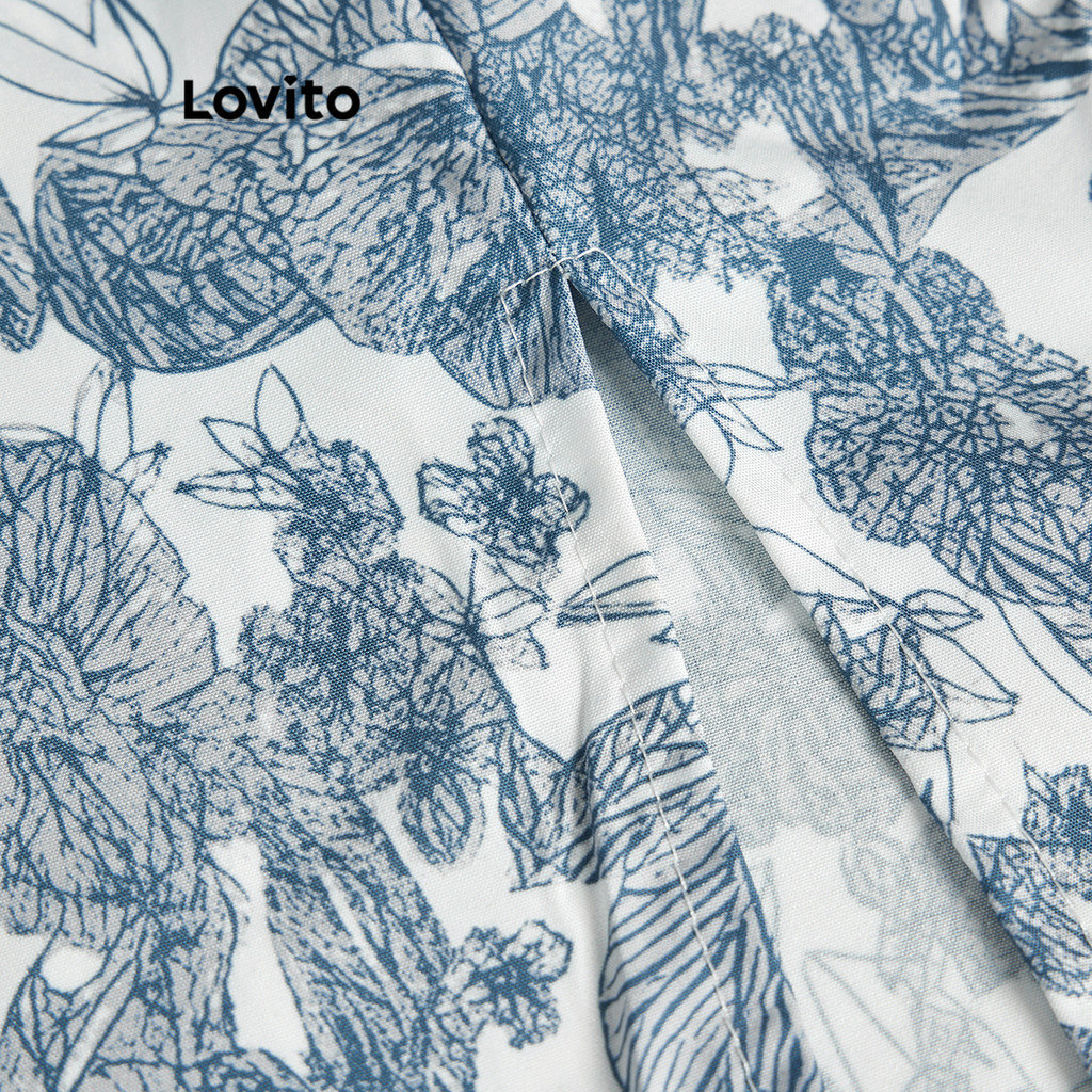 Lovito Boho Ditsy Floral Split Dress for Women L68ED195 (Blue)
