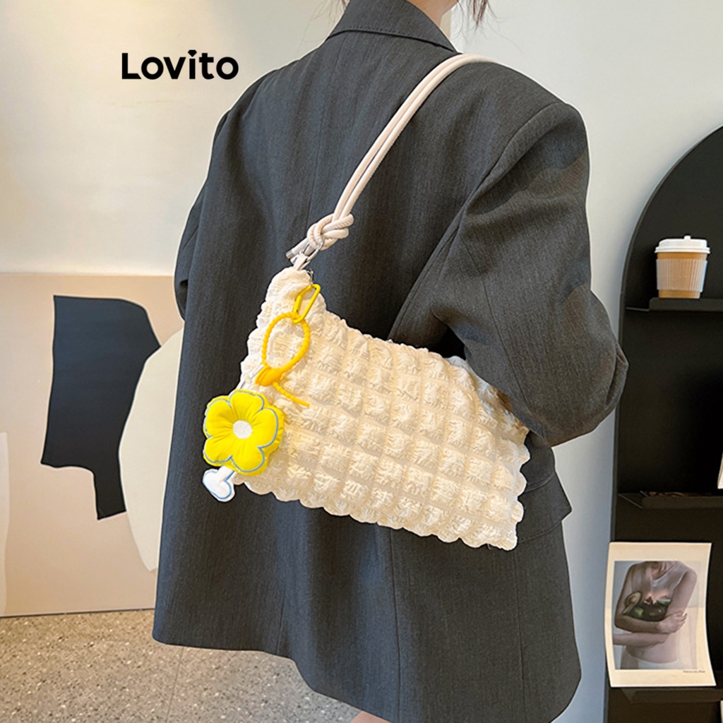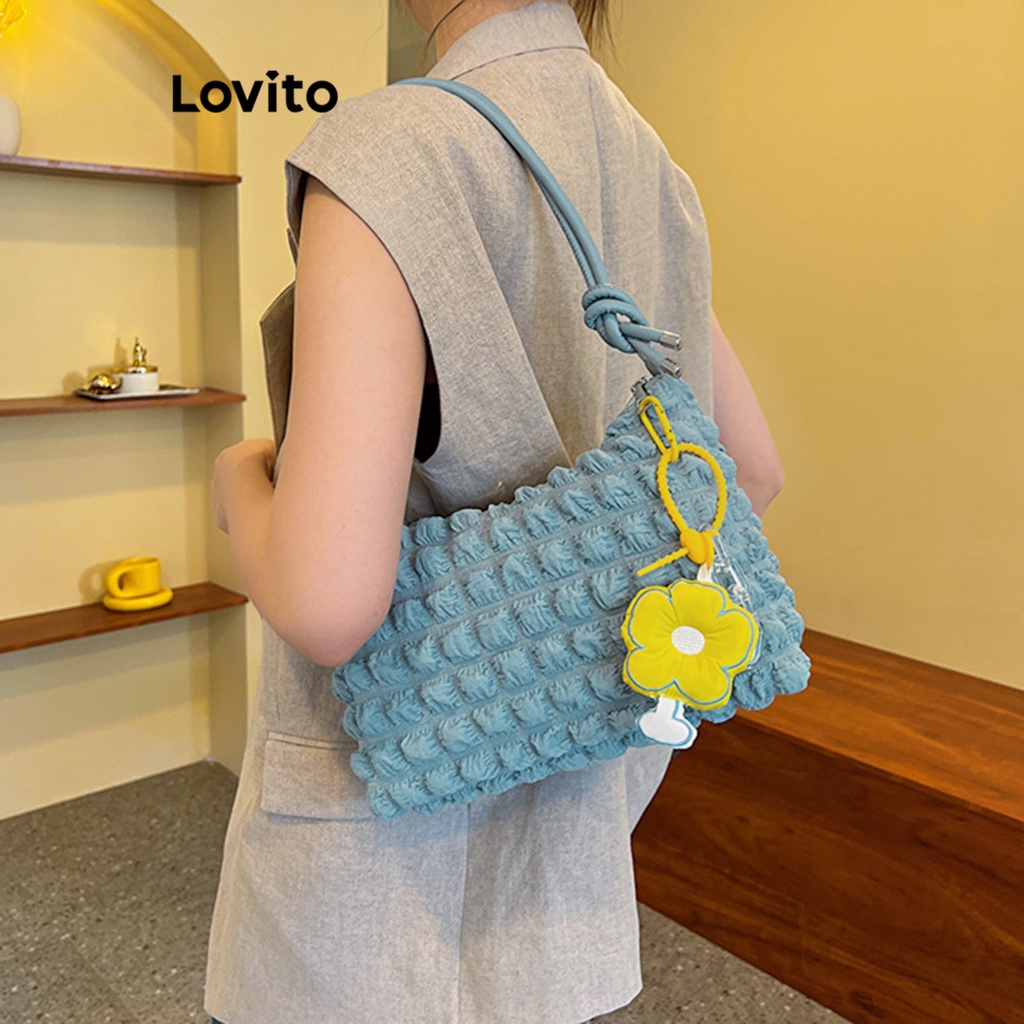 Lovito Casual Plain Basic Bag for Women L66AD045 (Off White/Blue/Black)
