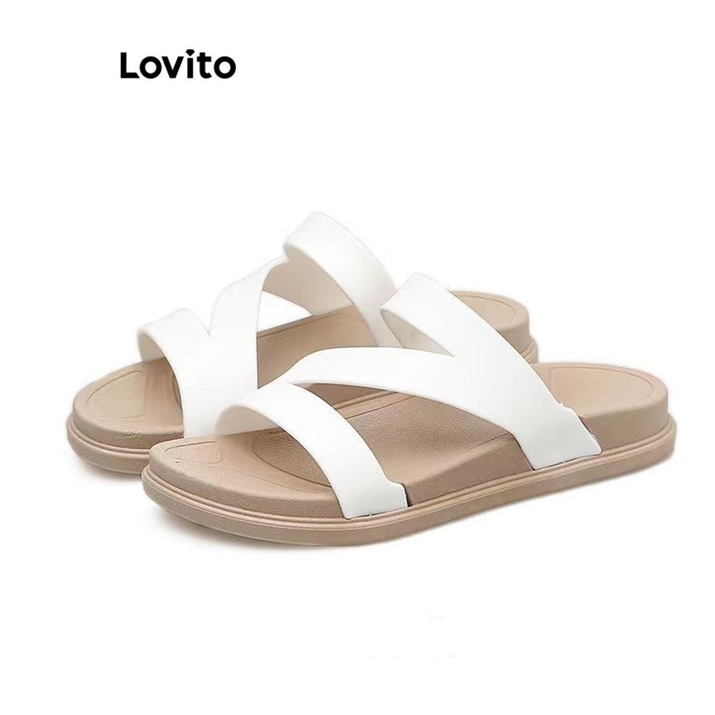 Lovito Casual Plain Tie Straw Flat Sandals for Women LFA31014