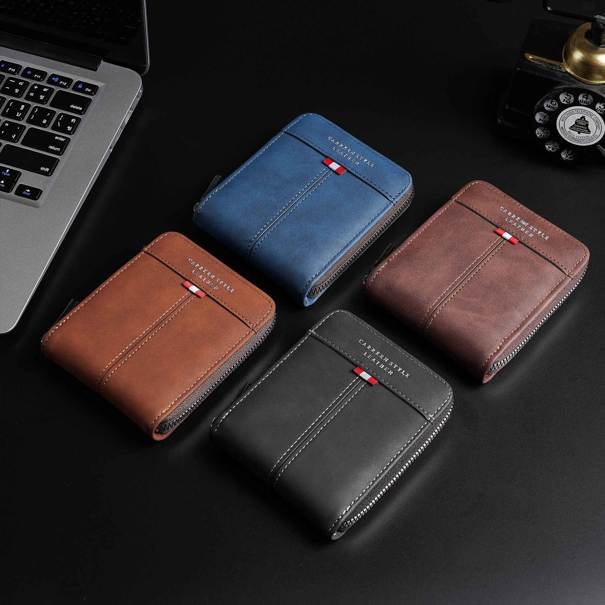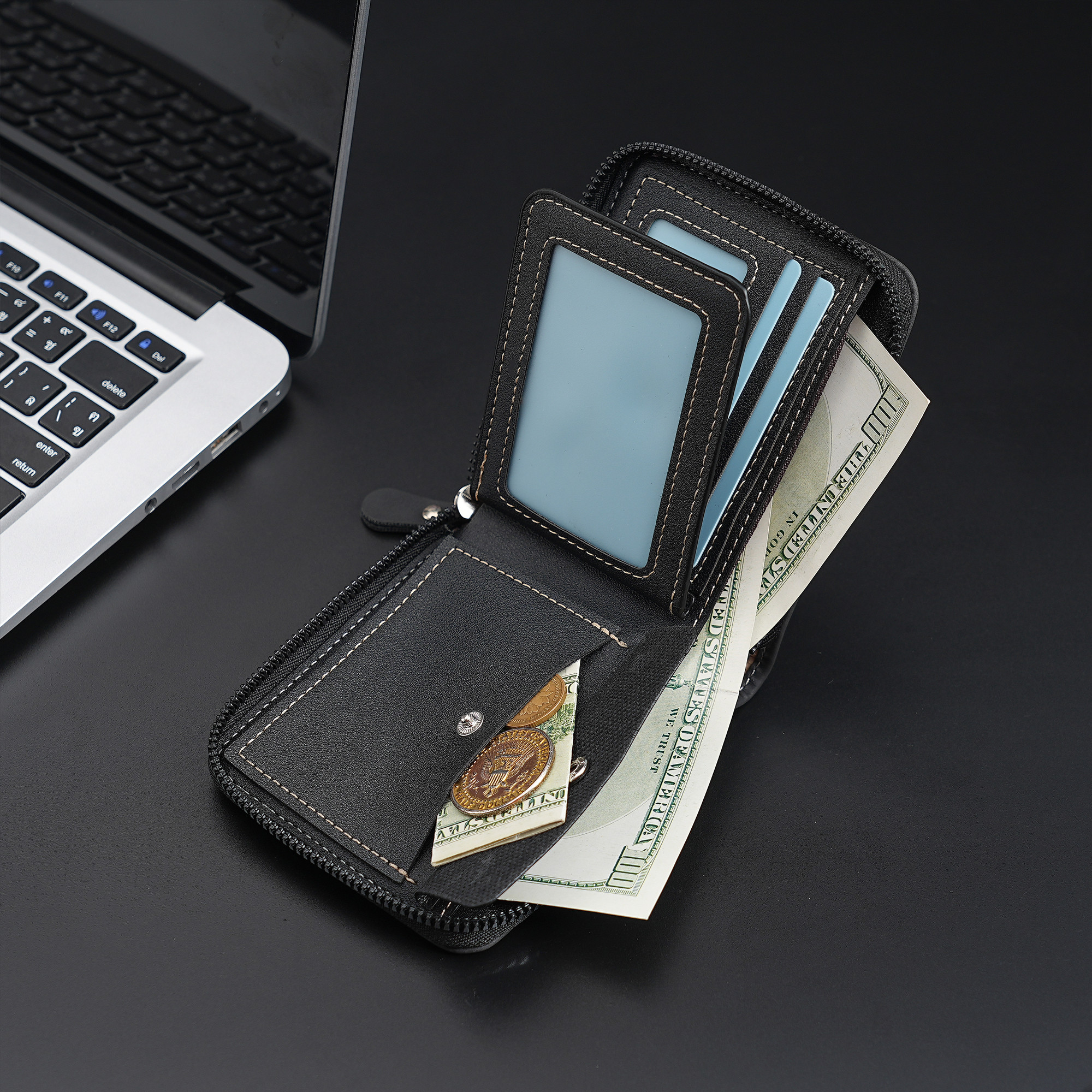 Men New Style Leather Zipper Short Wallet Multifunctional Coin Purse Multi-card ID Bag Card Holder