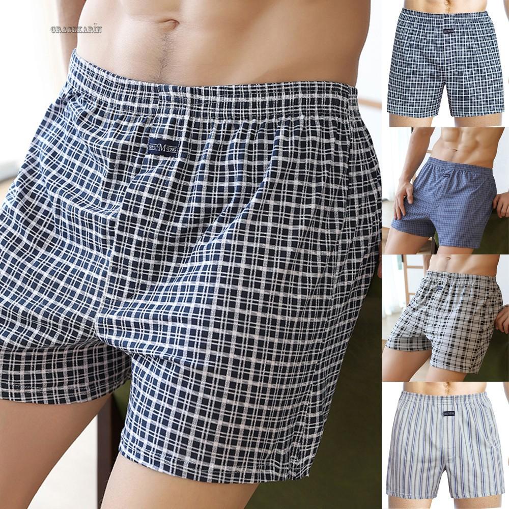 Men's Casual Loose Style Plaid Wide Leg Cotton Boxer Short Home Wear