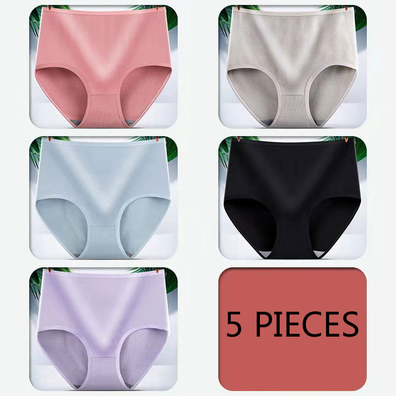 [SG Stock] 5PCS Plus Size Women High Waist Panties Lingeries Ladies Breathable Cotton Underwear Women Panties Briefs