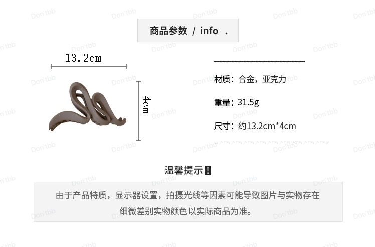 Solid color acrylic wave grab clip, simple temperament, shark clip hair clip for the back of the head, retro personalized hair accessories for women