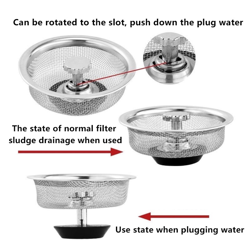 Stainless Steel Sink Filter with Plug Sink Strainer Drainer Drain Filter Kitchen Strainer
