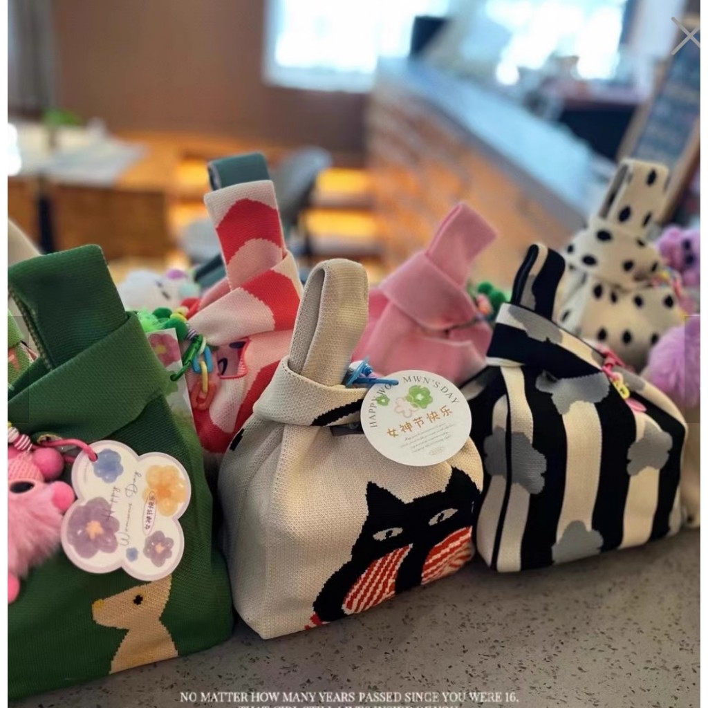 Teachers Day Gift knitted Tote Bag | Office Lunch Shopping Wristlet Bag