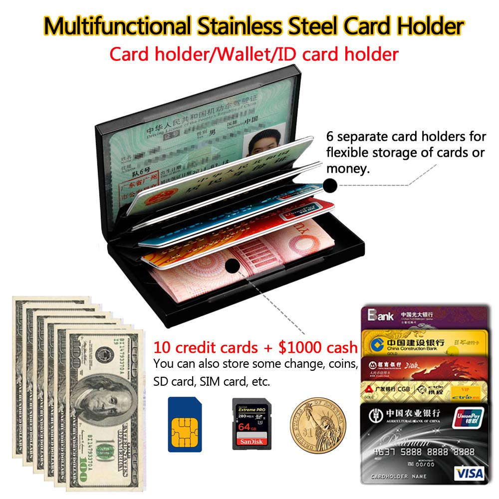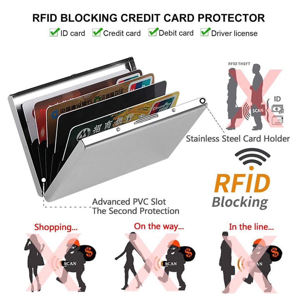 Ultra Thin Credit Card Holder for Men & Women, Stainless Steel Wallet RFID Blocking Slim Metal Case for Travel and Work