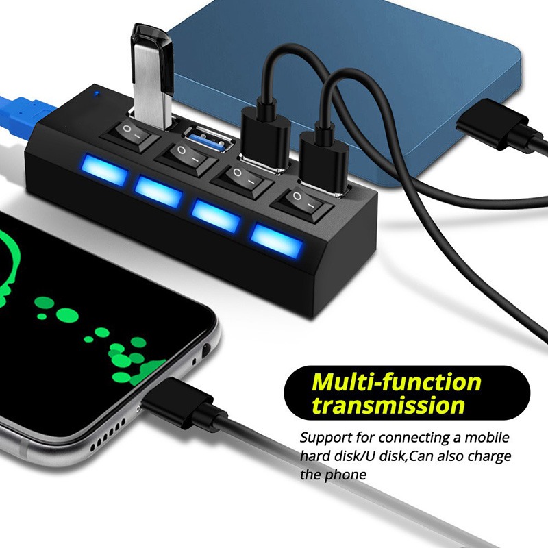 USB 2.0 4-Port HUBs High Speed Multi HUB Splitter Expansion Computer Charging Devices Data Transfer