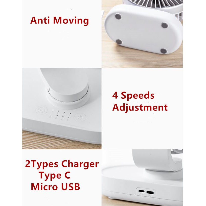 Wireless Auto Rotatable Table Fan Rechargeable Desk Mini Fan Laptop Cooler Cooling Portable USB Fan for Office Home Dorm