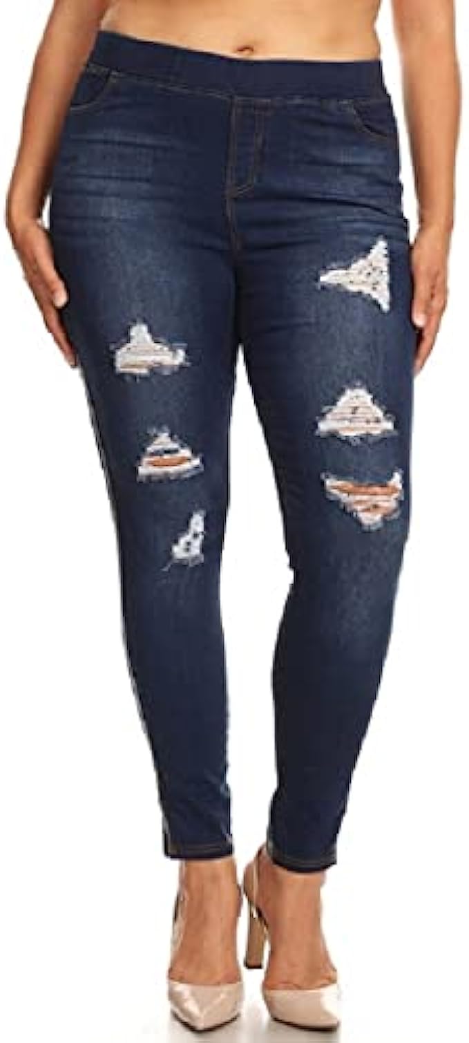 Women's Stretch Pull-On Skinny Ripped Distressed Denim Jeggings Regular-Plus Size