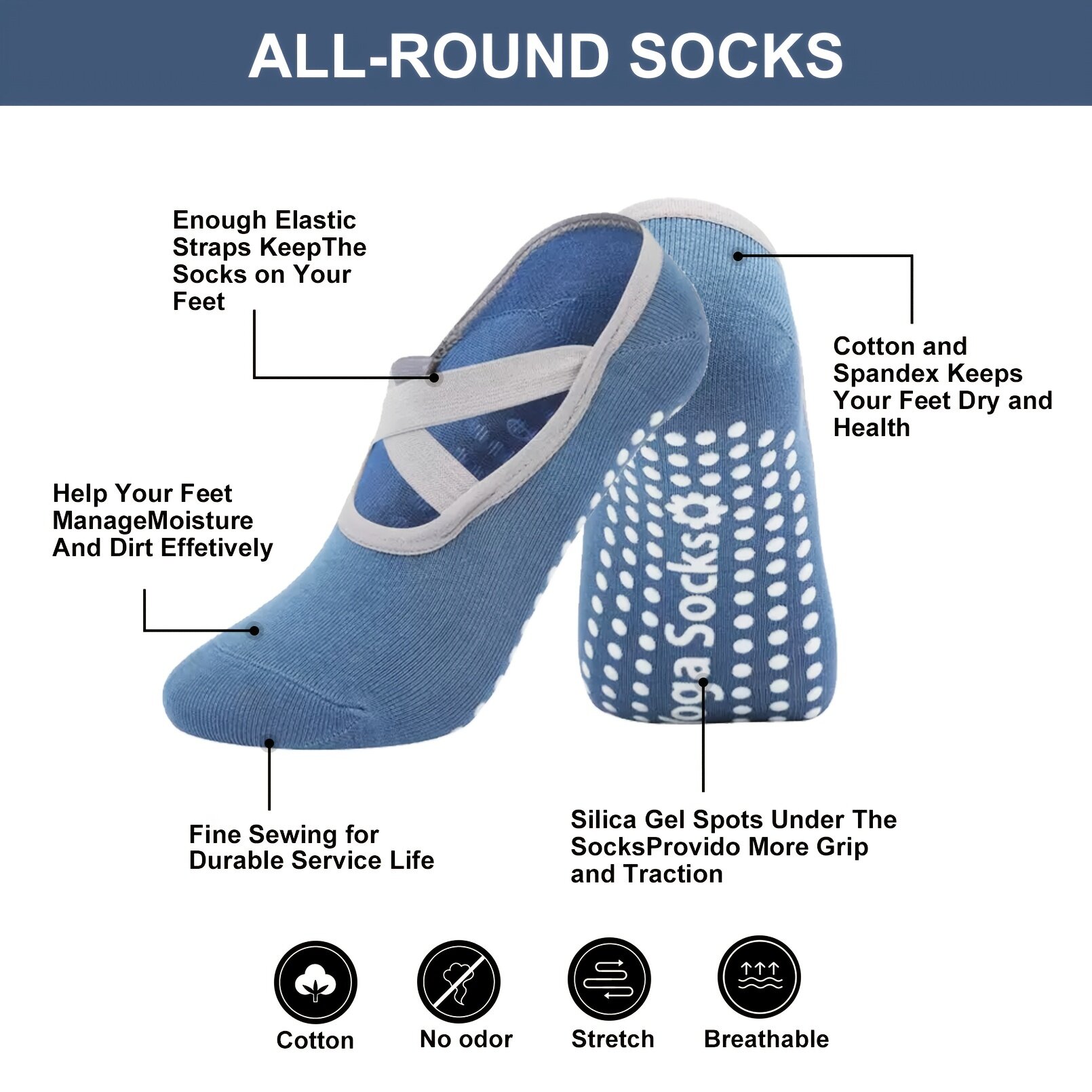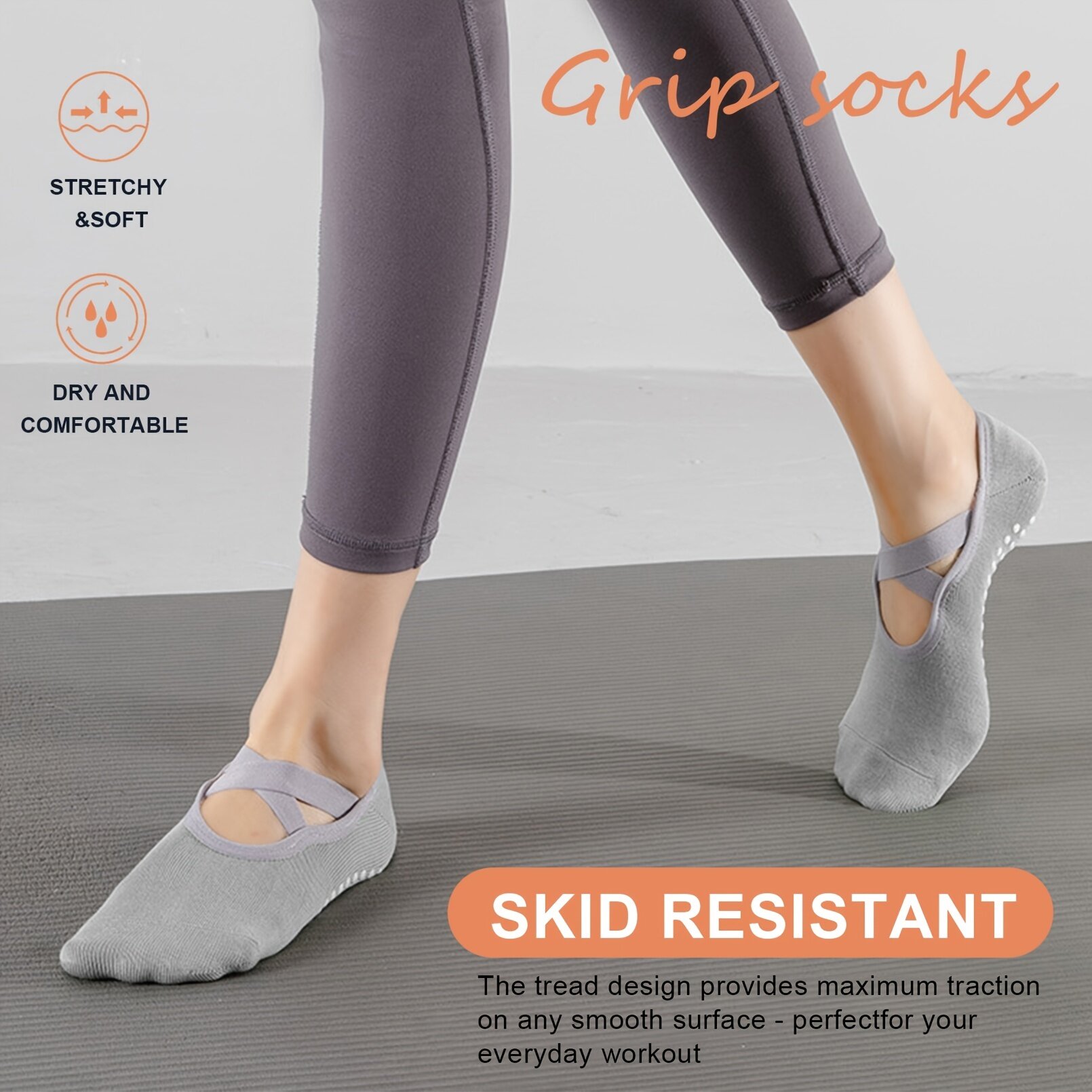 Women's Yoga Socks Non Slip Cross Strap Sports Socks With Extra Grips In Yoga Ballet Barre Pilates